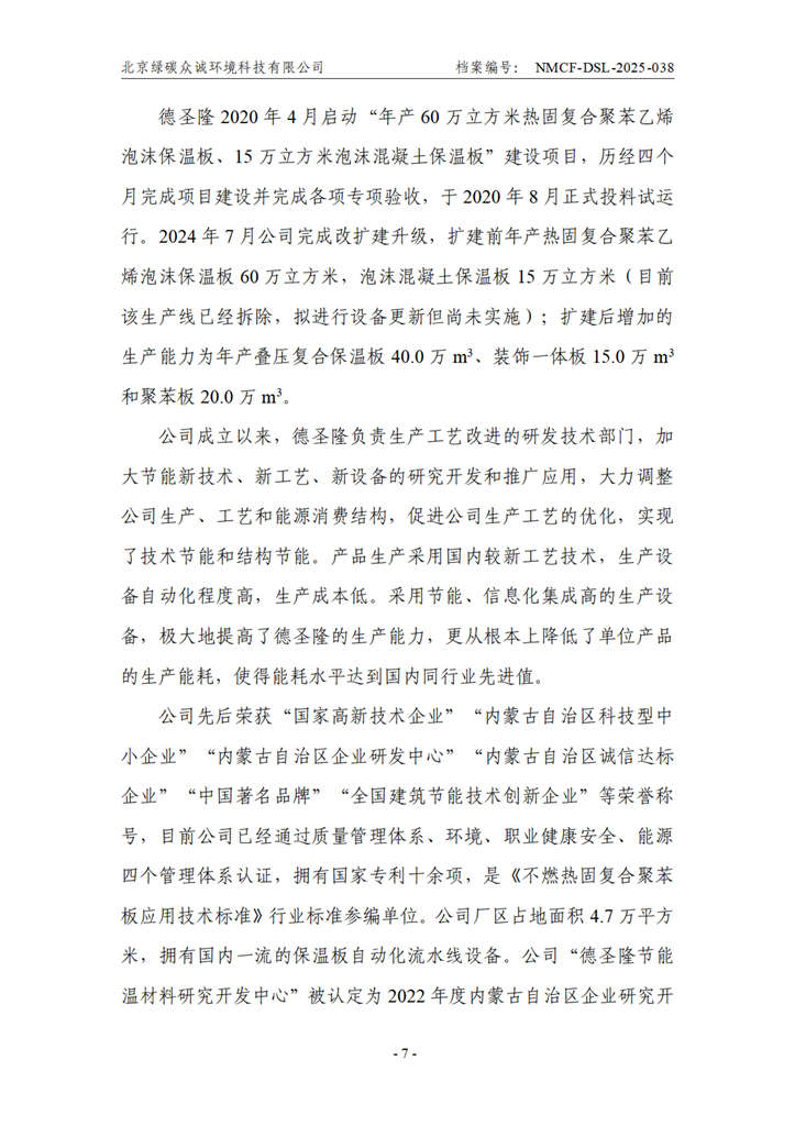 內蒙古德圣隆節能科技有限公司成立于2019年,位于內蒙古赤峰市元寶山區美麗河鎮物流園區,是一家集科研、開發、生產、銷售、施工為一體的現代化建材企業。公司主營產品:熱固復合聚苯乙烯泡沫保溫板、保溫裝飾一體板和泡沫混凝土保溫板,年生產能力達到6000000平方米。